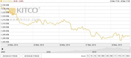 Kết quả là đóng cửa tuần qua, giá vàng giao ngay ở mức 1.294,9USD/oz, giảm gần 40USD/oz so với mức giá đóng cửa tuần trước đó. Trên sàn COMEX, giá vàng giao tháng 6 cũng mất 43USD/oz và đóng cửa ở mức 1.293,8USD/oz.