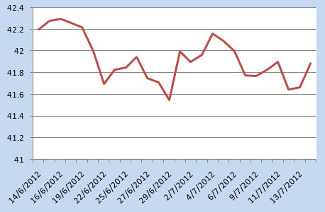 Lúc 8h10’ sáng nay, giá vàng SJC tại TPHCM giao dịch ở 41,74 – 41,89 triệu đồng/lượng (mua vào - bán ra), tăng 90 nghìn đồng/lượng so với cuối phiên hôm qua.