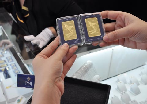 Giá vàng thế giới rơi về sát 1.300 USD sáng nay do đôla Mỹ mạnh lên. Ảnh: Anh Quân