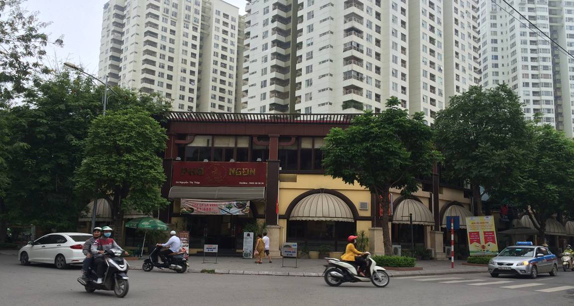 Tuy nhiên theo quan sát của phóng viên, hiện nay tại vị trí trước khối nhà cao 2 tầng tại vị trí tiếp giáp phố Hoàng Ngân và phố Nguyễn Thị Thập là một bãi gửi xe ngày và đêm, nhưng bãi đỗ xe này chủ yếu phục vụ cho khách ăn tại nhà hàng. Ngoài ra, phần diện tích vỉa hè, khuôn viên cây xanh của khu đất này được tận dụng đặt bàn ghế phục vụ khách ăn nhậu. Không những thế, phần ngầm của công trình là hệ thống quán beer cao cấp với diện tích rộng hàng trăm m2.