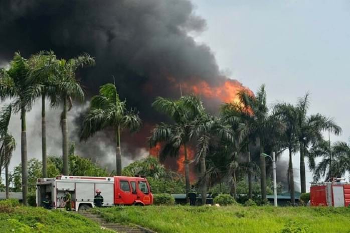Cháy kho hóa chất Đức Giang ở quận Long Biên.