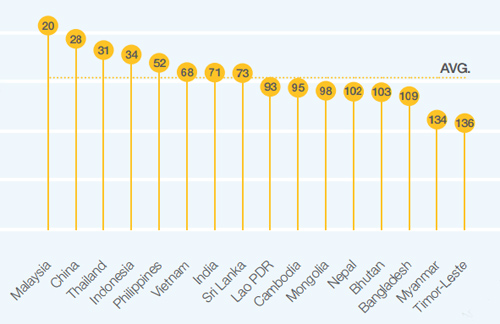 WEF nhận định ở phần lớn các nền kinh tế mới nổi tại đây, thách thức chung là giải quyết tình trạng thiếu hụt cơ sở hạ tầng, tăng kết nối trong khu vực, giảm thiểu quan liêu, tham nhũng và cải thiện độ hiệu quả của thị trường.
