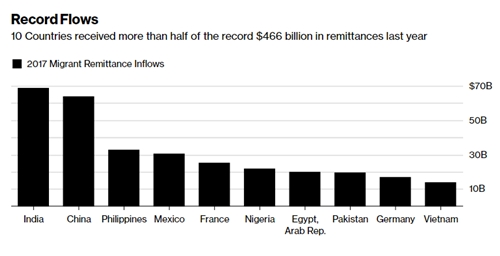10 nước nhận kiều hối lớn nhất thế giới năm 2017.