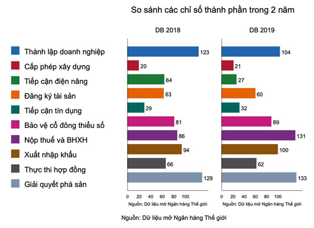 Theo Báo cáo “Môi trường Kinh doanh 2019: Đào tạo để Cải cách” của WB, tổng điểm của Việt Nam đã tăng từ 66,77 điểm lên 68,36 điểm, nhưng so về thứ hạng Việt Nam bị giảm một bậc, đứng vị trí 69/190 nền kinh tế.