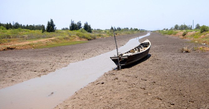 Khô hạn, xâm nhập mặn ở Đồng bằng Sông Cửu Long. Ảnh: Công Hân/Báo Thanh Niên.