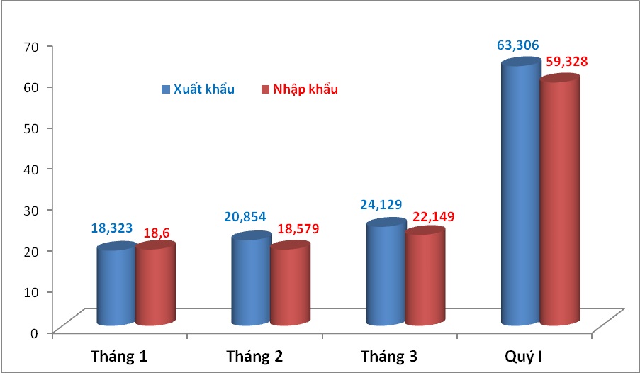 Tính đến hết tháng 3 năm 2020, tổng trị giá xuất khẩu của Việt Nam đạt 63,23 tỷ USD, tăng 7,5% tương ứng tăng 4,43 tỷ USD so với cùng kỳ năm 2019. Tổng trị giá nhập khẩu của cả nước đạt 59,49 tỷ USD, tăng 3,7% (tương ứng tăng 2,15 tỷ USD) so với cùng kỳ năm 2019. Cán cân thương mại xuất siêu 3,74 tỷ USD.