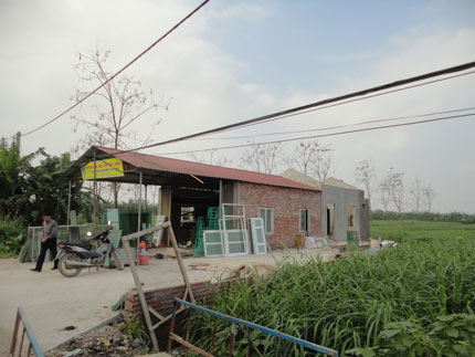 Ngoài gia đình ông Sinh, hộ gia đình ông Trường Giang cũng đã xây dựng một nhà xưởng sản xuất khung nhôm kính trên đất nông nghiệp. Không dừng lại ở đó, gia đình ông Giang tiến thêm bước nữa khi xây dựng thêm một căn nhà bên cạnh để ở. Những ngày cuối tháng 1/2013, khi chúng tôi có mặt tại địa phương thì căn nhà làm thêm của ông Giang đang được hoàn thiện. Điều đáng nói là công trình này chỉ cách Nhà văn hóa xã có 20m, cách UBND xã vài trăm mét nhưng các vụ lấn chiếm này đều không bị ngăn chặn. Trong những hộ lấn chiếm đất nông nghiệp nhiều nhất phải kể đến gia đình ông Ngưỡng, ông này đã xây dựng trái phép với diện tích hàng trăm mét vuông để cho Công ty xây dựng cầu 18 thuê làm văn phòng, lán trại cho công nhân ở.