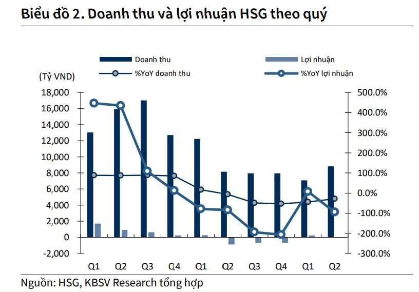 Tuy nhiên, KBSV cho rằng với việc đang hoạt động ở cả hai phân khúc sản xuất và bán lẻ, Hoa Sen có thể chịu ảnh hưởng gấp đôi từ biến động giá nguyên liệu so với các doanh nghiệp cùng ngành.