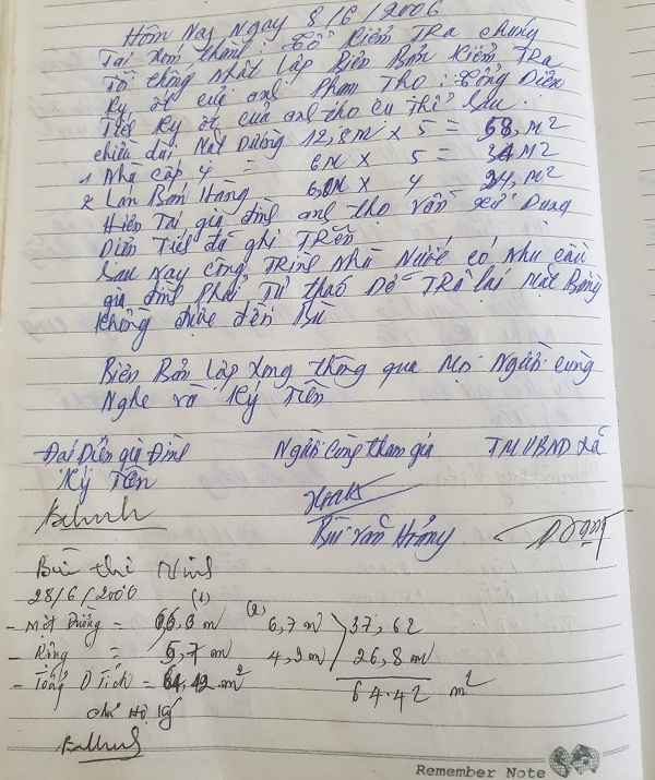 Tuy nhiên, nét mực, màu giấy còn khá mới không giống như nằm kho suốt 13 năm qua khiến cho những hoài nghi của người dân là có cơ sở. Kiểm tra trong sổ biên bản này PV còn thấy rõ thời gian ghi nhiều cuộc họp khác từ năm 2012, 2015…
