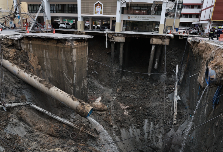 Theo Thai PBS và tờ Matichon, dù thời điểm xảy ra sự cố không có mưa, nhưng đường ống cấp thoát nước bị vỡ đã liên tục xả nước xuống hố, gia tăng nguy cơ sụt lún và lan rộng khu vực ảnh hưởng.