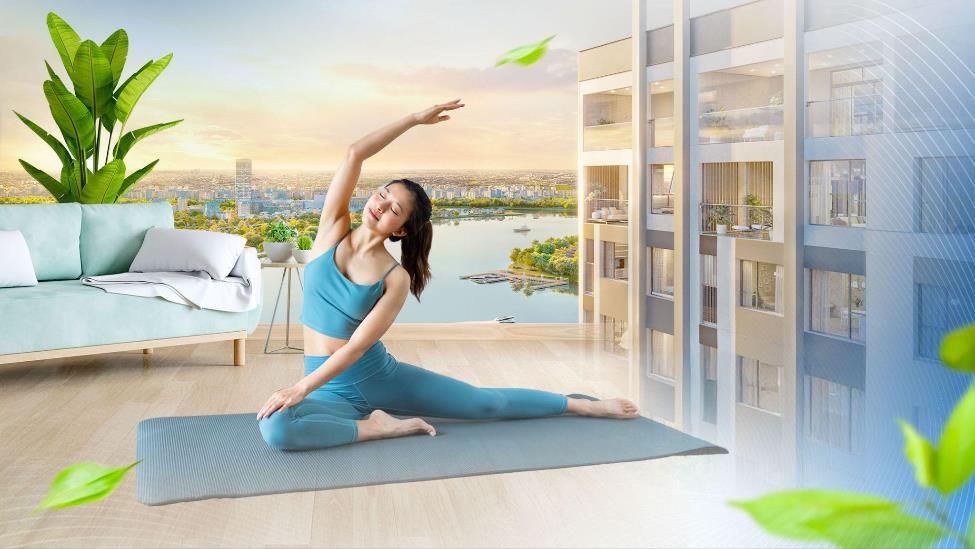 Khu vực đường dạo dưỡng sinh và không gian yoga ngoài trời được bố trí nhằm tạo điều kiện lý tưởng cho các hoạt động rèn luyện sức khỏe trong không khí trong lành. Cư dân có thể bắt đầu ngày mới với buổi yoga đón bình minh, hay kết thúc ngày bằng những bước chạy bộ nhẹ nhàng dọc theo con đường ven sông để cơ thể và tâm trí được thả lỏng hoàn toàn.