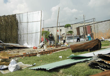 Những căn nhà bị cưỡng chế ở xã Vĩnh Lộc A trong buổi sáng 22-5 đang được cất lại vào buổi chiều. Ảnh: N.NGHĨA