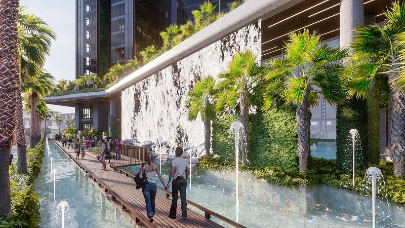 Không gian sống trong lành với nhiều cây xanh và mặt nước tại Sunshine City Sài Gòn.
