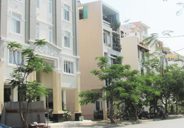 Nhiều căn nhà tại Phú Mỹ Hưng xây không đồng bộ về mặt đứng kiến trúc. Ảnh: CẨM TÚ