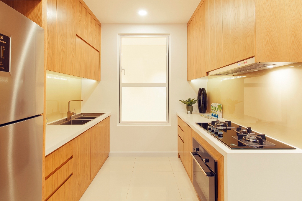 Được phân khu riêng biệt, rộng rãi, gia chủ có thể bố trí gian bếp thông minh kết hợp với đầy đủ dụng cụ nhà bếp hiện đại. Những vật liệu trắng, bóng và sáng chắc chắn sẽ là gợi ý tuyệt vời để căn bếp của bạn luôn tiện nghi, và bạn không cần di chuyển quá nhiều mà vẫn đảm bảo mọi thao tác nấu nướng.