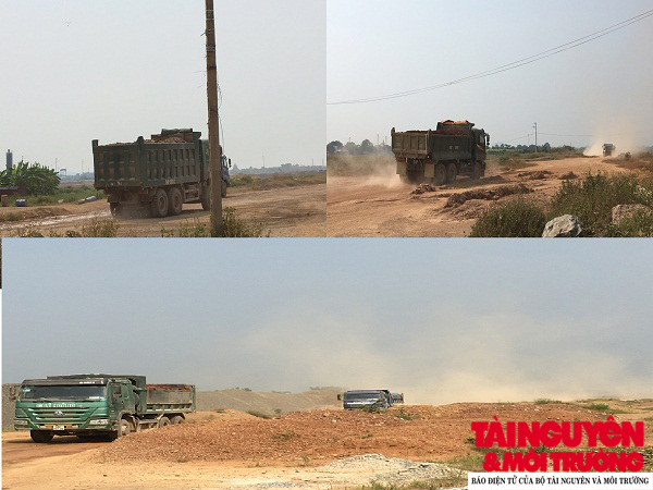 Mỗi ngày có hàng trăm lượt xe tải chở đất ra vào san lấp phát tán bụi, gây ô nhiễm môi trường.