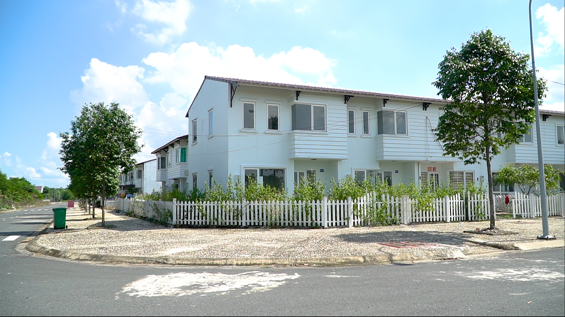 Phía trước nhiều ngôi nhà bỏ hoang, cỏ mọc um tùm thậm chí cao hơn đầu người và một số bức tường đã nứt vách. Để giúp quý vị hiểu rõ hơn về thiết kế bên trong, chúng tôi đã vào một căn hộ bỏ trống và không có dấu hiệu nào của việc có người từng ở. Chúng tôi nhận thấy thiết kế bên trong nhà khá hiện đại, gồm 2 tầng, tầng 1 có không gian phòng khách, phòng bếp và nhà vệ sinh. Tầng 2 gồm 1 phòng ngủ lớn và 1 phòng ngủ nhỏ. Thiết kế tổng thể của Thăng Long Home - Phước An cơ bản giống nhau và đều có khoảng sân trước và sân sau.