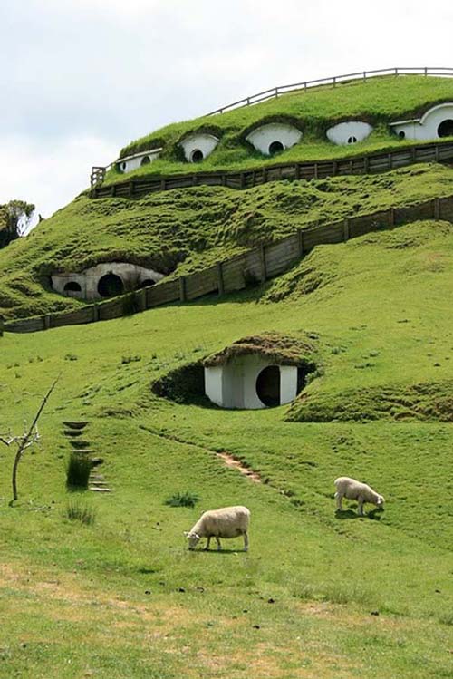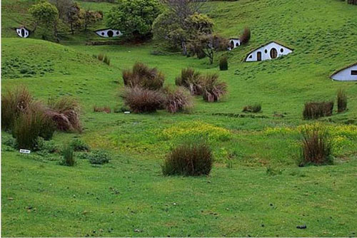 Không phải 1, 2 ngôi nhà mà là một làng Hobbit, Matamata ở New Zealand. Mỗi ngôi nhà được sơn màu trắng nổi bật ẩn mình trên nền cỏ của triền đồi đang trở thành một điểm thu hút khách du lịch. Cũng chính nhờ bộ phim "Chúa tể chiếc nhẫn" mà ngôi làng với những ngôi nhà đặc biệt này được mệnh danh là vùng trung tâm của trái đất. Khung cảnh đẹp trữ tình của ngôi làng khiến khách du lịch dù chứng kiến tận mắt nhưng vẫn cứ ngỡ hình ảnh này chỉ có trong những câu chuyện cổ tích.