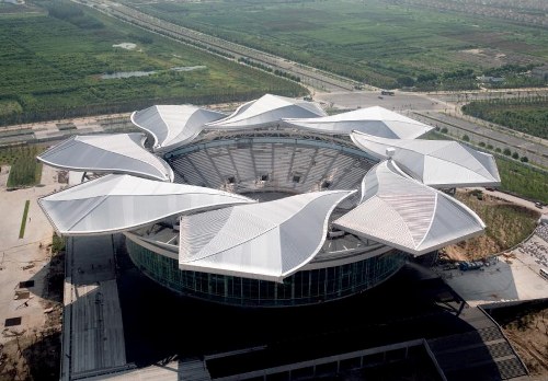 “Đóa Mộc Lan Thượng Hải” là cái tên mà nhiều người đặt cho sân vận động Trùng Khánh ở đô thị lớn nhất Trung Quốc này. Mái nhà của SVĐ được thiết kế theo hình dáng đóa Mộc Lan nở rộ 8 cánh bằng thép tuyệt đẹp. Mái nhà đặc biệt này còn có khả năng “di động”, nghĩa là khi diễn ra các sự kiện thể thao thì bông hoa sẽ “xòe cánh” và ngược lại.