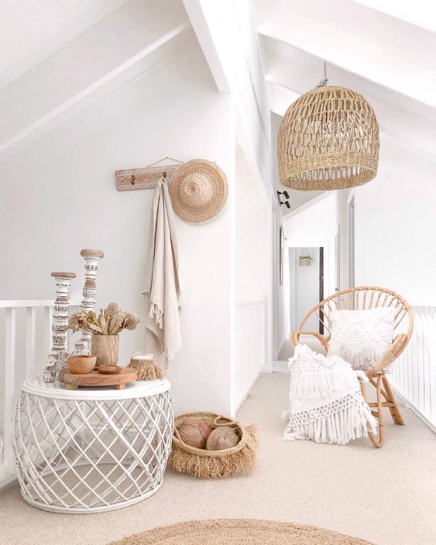 Vật liệu tự nhiên là thứ cần có trong một không gian phòng khách đầy phóng túng như boho và mây là vật liệu tự nhiên hoàn hảo để mang đến điều đó cho ngôi nhà của bạn. Nó khá nhẹ nhàng và cũng rất thân thiện với môi trường.