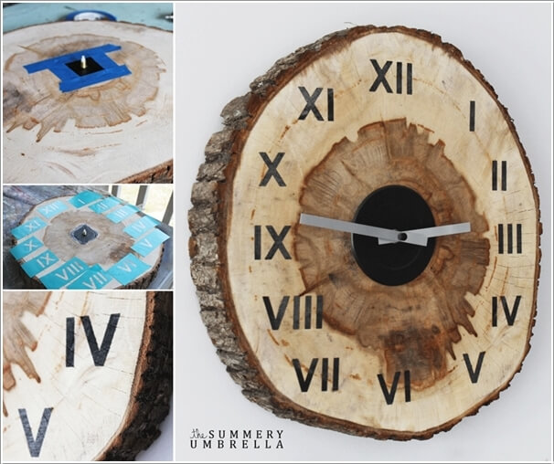 Sáng tạo hơn, bạn có thể biến những khúc gỗ thành đồng hồ treo tường độc đáo như thế này.