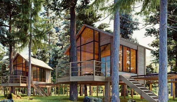 Mẫu nhà lắp ghép bằng gỗ là thiết kế đơn giản vừa mang nét hiện đại kết hợp với vẻ đẹp truyền thống của vùng bản đại. Ngôi nhà lắp ghép sử dụng chất liệu gỗ là chủ yếu kết hợp vật liệu kính tạo cho chúng ta cảm giác hòa mình vào khung cảnh thiên nhiên xung quanh.