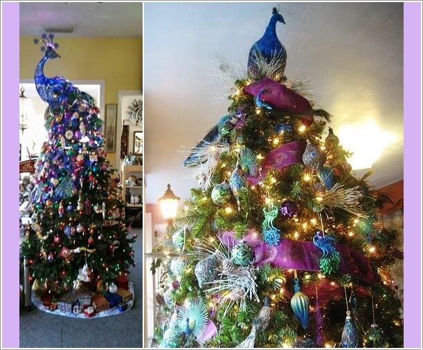 Thiết kế một cây giáng sinh với tạo hình con công lung linh màu sắc.
