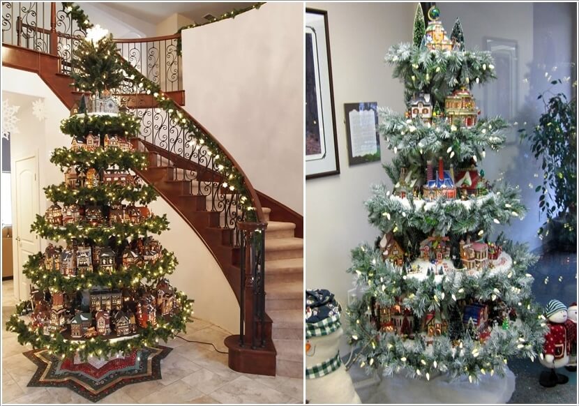 Kết hợp cả ngôi làng trên cây giáng sinh với nhiều dây đèn led trang trí lung linh.