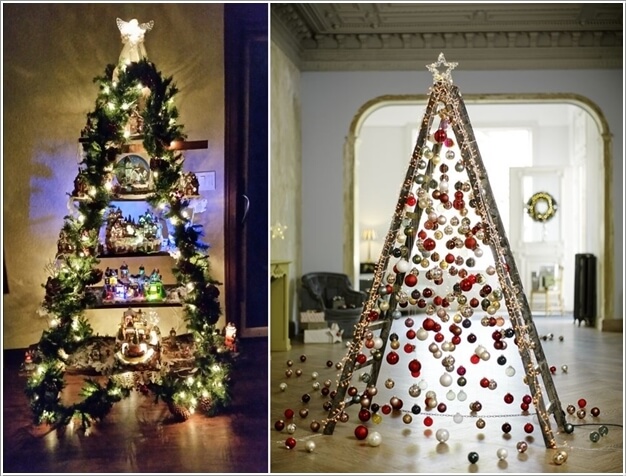 Sử dụng thang gấp cùng nhiều đồ trang trí, bạn cũng có ngay cây giáng sinh.