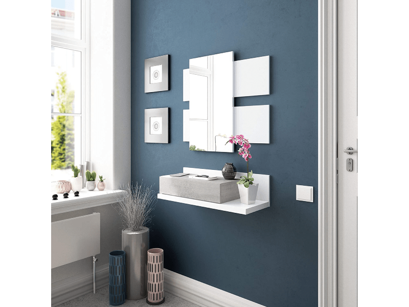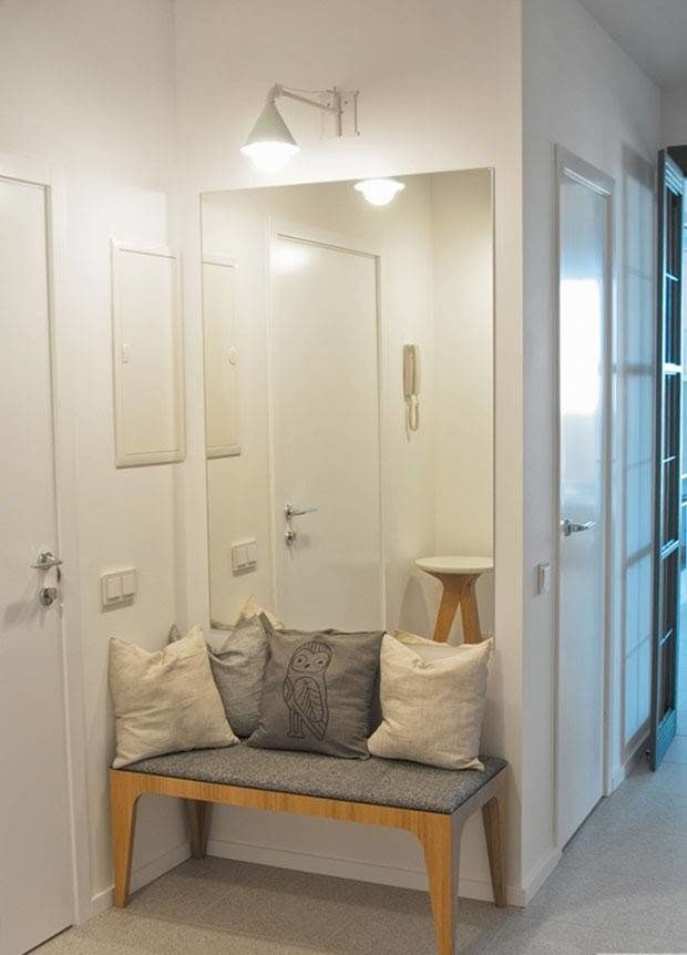 Đừng quên tận dụng không gian thẳng đứng phía trên băng ghế và đặt một chiếc gương lớn. Nó dùng để phản chiếu ánh sáng, tạo ra một ảo ảnh về không gian và đặc biệt có thể ngắm bản thân một chút trước khi ra khỏi nhà.