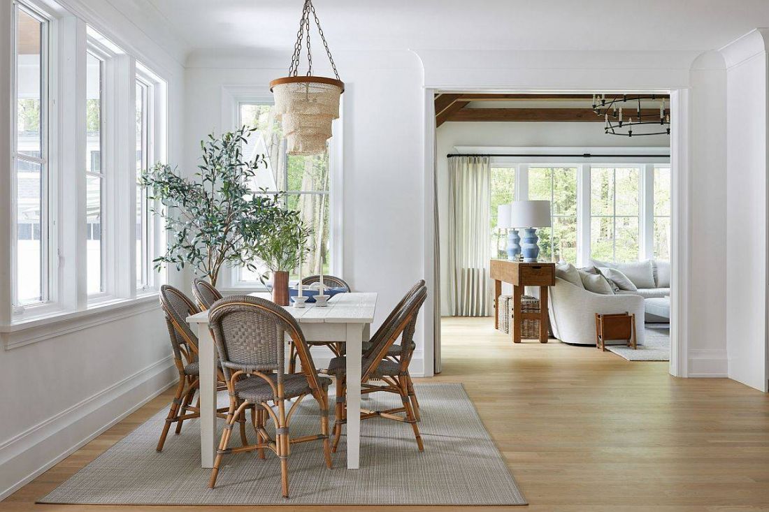 Phòng ăn nhỏ theo phong cách bãi biển trở thành một phần của khu vực sinh hoạt chung.