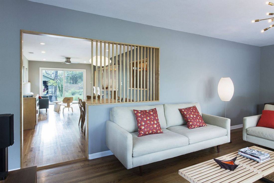 Sử dụng nửa bức tường để tạo sự riêng tư cho phòng khách và không gian ăn uống.