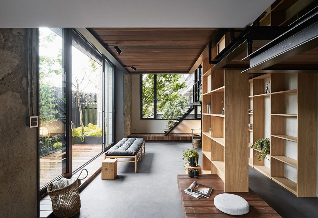 Hành lang vừa là kệ sách giúp tiết kiệm được không gian, mà lại thuận tiện, dễ dàng sử dụng.
