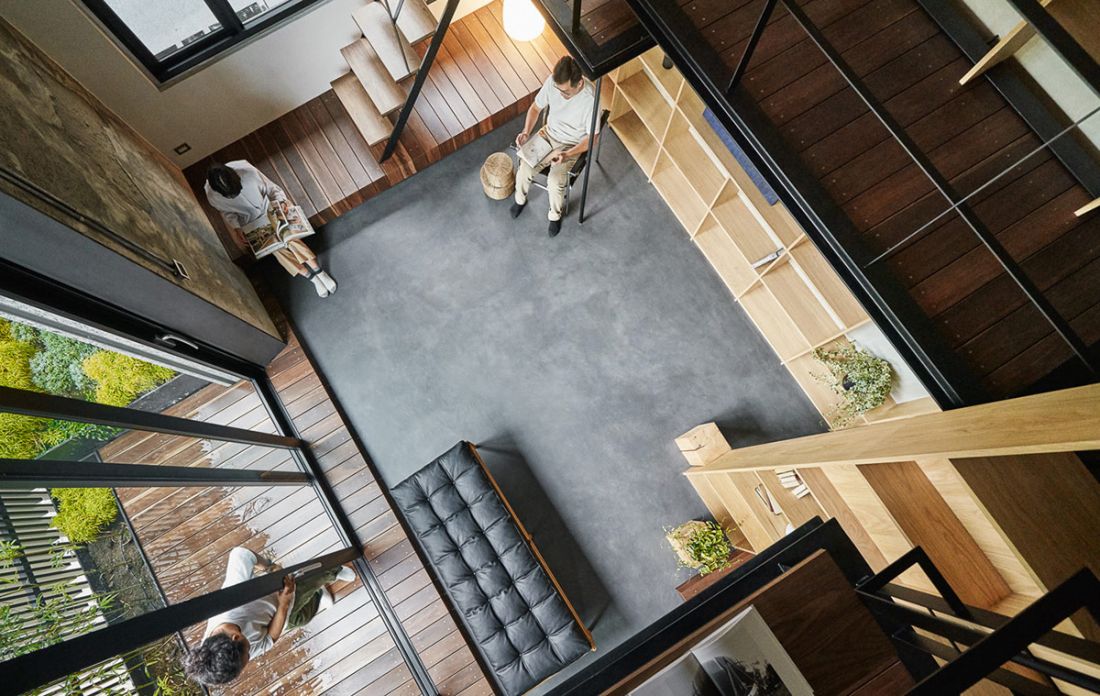 Ngôi nhà được thiết kế với 2 phòng ngủ treo ấn tượng và chiếc cầu thang sắt ở giữa để kết nối.