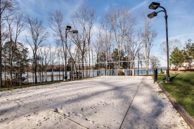 Sân chơi bóng chuyền bằng cát phía sau nhà.