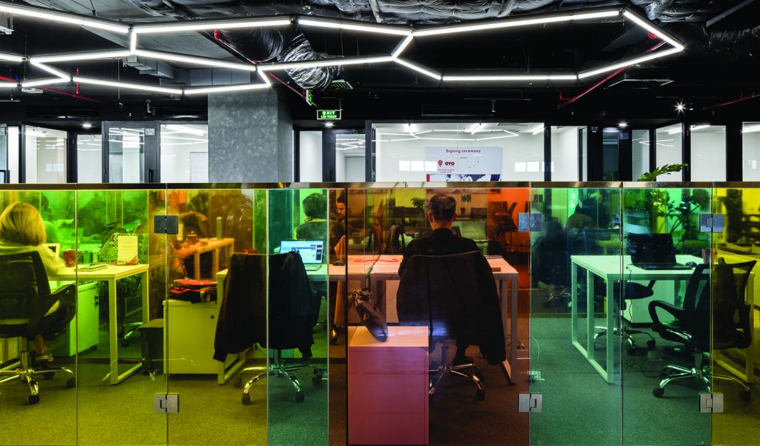 Các vách ngăn bằng kính mờ được khuyến khích sử dụng để tận dụng ánh sáng tự nhiên mà vẫn không ảnh hưởng đế sự riêng tư của không gian làm việc khép kín.