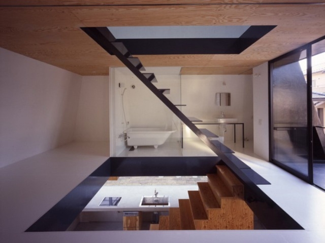 Các không gian mở trung tâm tầng trệt và tầng đầu tiên cho cảm giác yên bình; và tầng thứ hai, ánh sáng tự nhiên được “thắp” lên khi đóng cửa sổ. Mỗi tầng được kết nối bởi các khoảng thông tầng từ phía trung tâm sàn, trở thành các đơn vị ở khác nhau có thể phân biệt bởi vật liệu hoàn thiện.