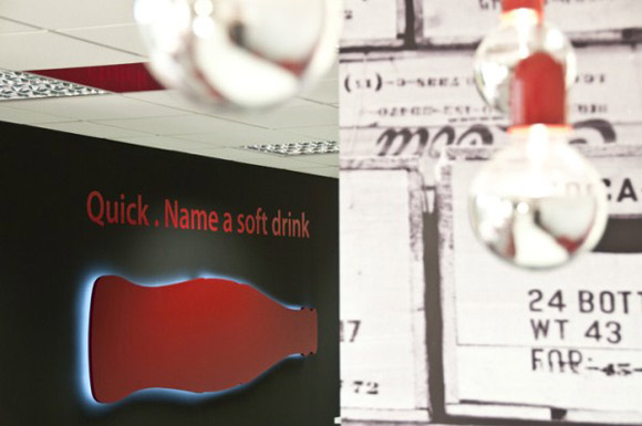 Câu nói vui "Hãy nhanh chóng gọi tên 1 loại thức uống" với mẫu chai Coca Cola quen thuộc bên dưới. |