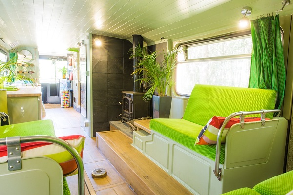 Khu vực phòng khách trên chiếc xe buýt hai tầng.