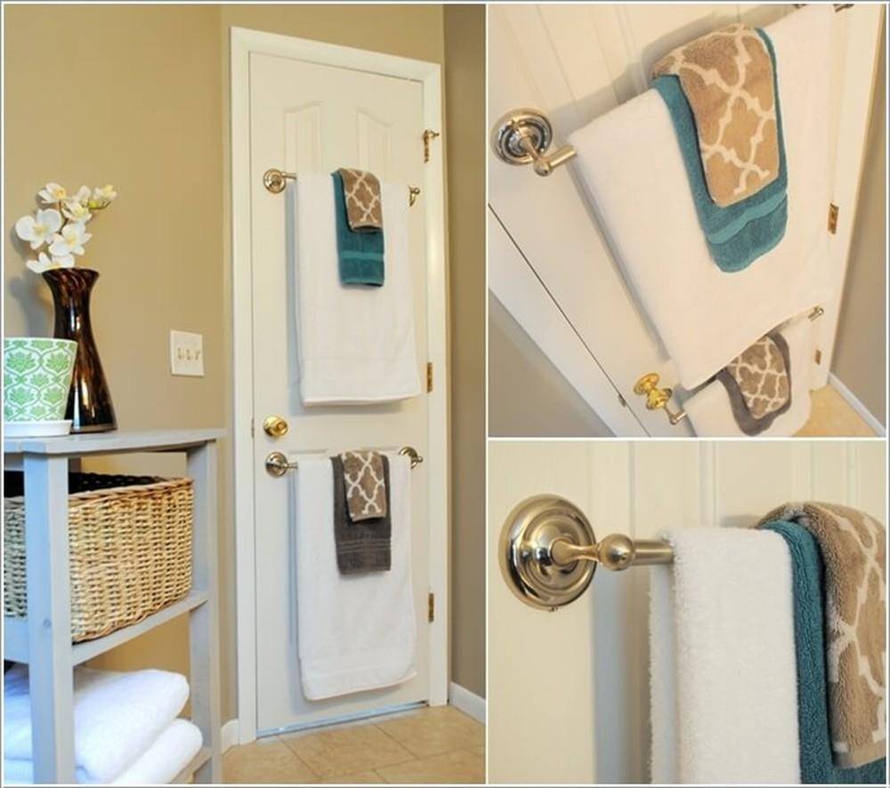 Nhà tắm là nơi có diện tích khá eo hẹp, vì vậy việc tận dụng tối đa không gian sau cánh cửa thành nơi lưu trữ là ý tưởng vô cùng thông minh. Chỉ cần vài cái móc được đính chắc chắn sau cánh cửa là bạn đã có một nơi khô ráo, sạch sẽ cho vô số những thứ cần thiết như: quần áo, khăn hay túi giặt… Bạn cũng có thể dành chút thời gian trang trí, biến tấu nơi đây thành góc nhỏ xinh xắn chứa những đồ phụ kiện như: vòng, thắt lưng, băng đô…