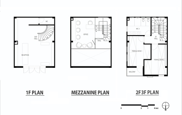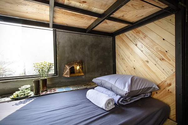 Giải pháp đưa ra là tận dụng triệt để từng không gian để đảm bảo tính công năng, đồng thời khai thác tối đa các lợi thế về vị trí, hướng các không gian bên trong ra bên ngoài thông qua các ô cửa sổ nhỏ được bố trí tinh tế ở các vị trí khác nhau cho phù hợp với vị trí của người sử dụng bên trong, vì khách lưu trú sử dụng giường tầng.