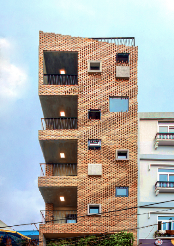 Nhà trong hẻm với mặt tiền gạch lỗ ở trung tâm Sài Gòn