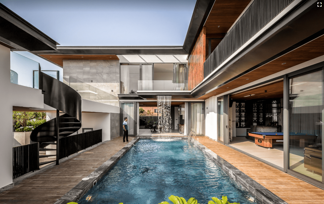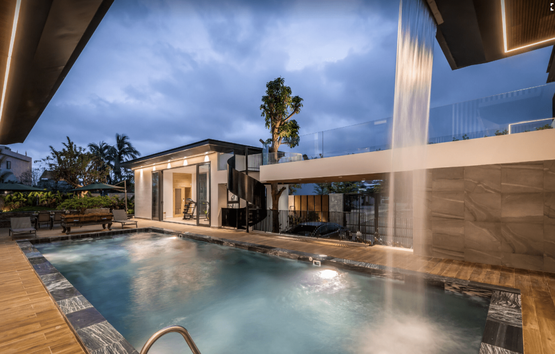 Phối cảnh biệt thự 1000m2 hiện đại sang trọng có thác nước bên trong tại Quảng Nam.