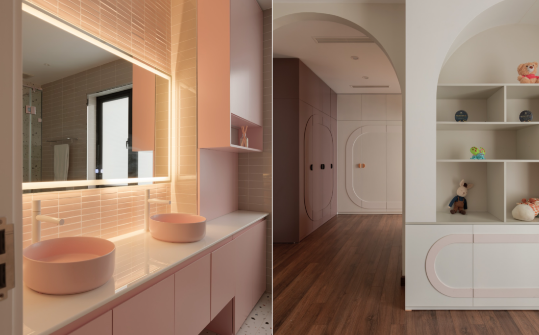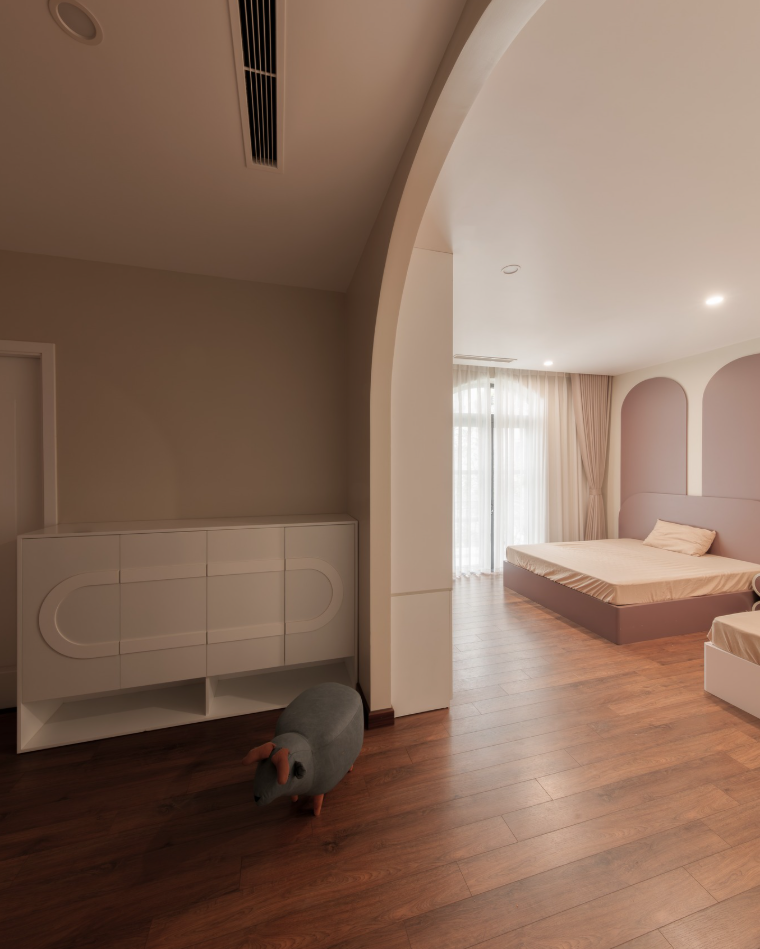 Mỗi phòng ngủ là một thế giới riêng, nơi cá tính và sự lãng mạn hòa quyện. Phòng ngủ công chúa: Hai phòng ngủ dành cho con gái lấy cảm hứng từ sự hiện đại và năng động, với sắc hồng cá tính làm điểm nhấn chủ đạo. Thiết kế hai giường đơn cùng góc học tập riêng tạo điều kiện tốt nhất cho sự phát triển và tính tự lập của trẻ.