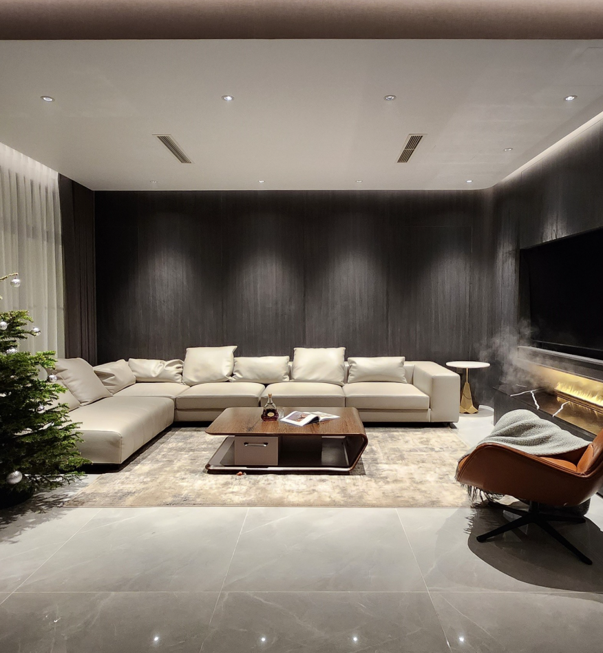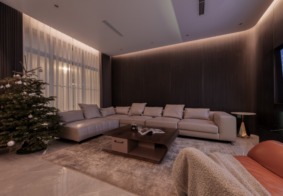 Nếu các biệt thự hiện đại thường ưa chuộng không gian mở tuyệt đối, thì gia chủ tại đây lại có yêu cầu cao về sự riêng biệt hóa công năng. phòng khách độc lập: Phòng khách được thiết kế như một không gian riêng biệt, không bị trộn lẫn với bếp và khu vực ăn uống. Điểm nhấn là bộ sofa trắng big size êm ái, mời gọi sự thư giãn.