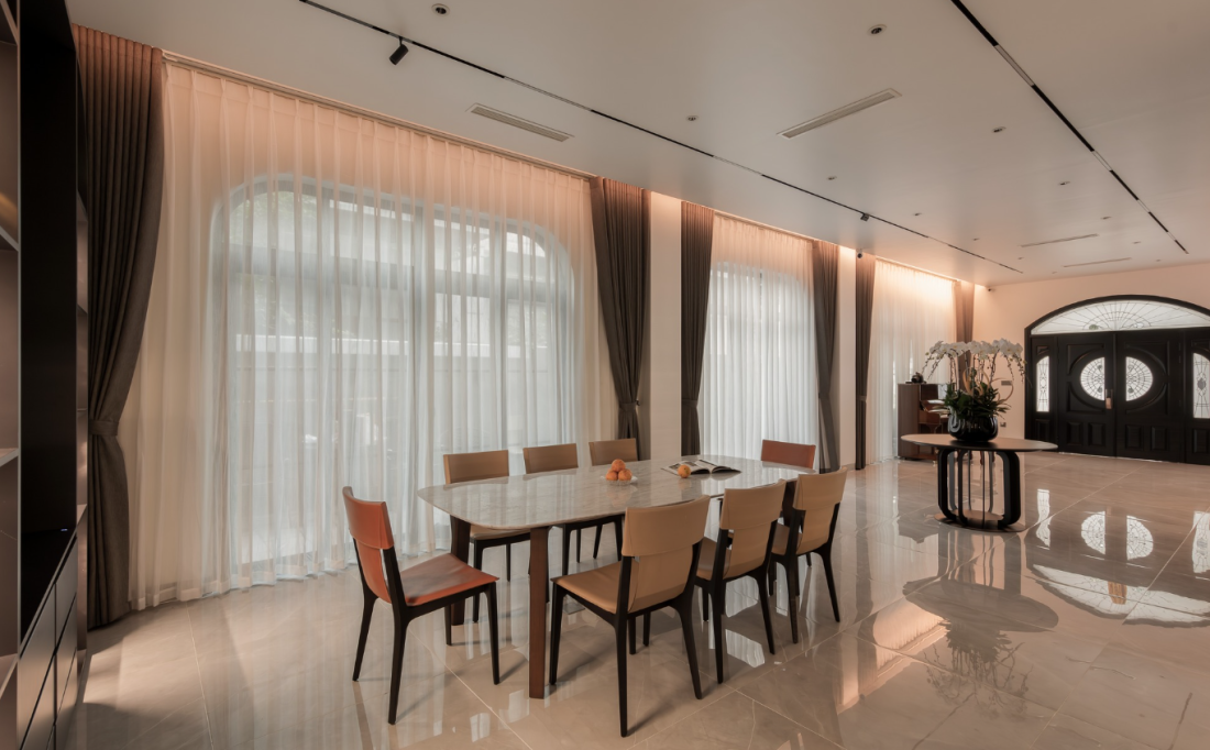 Giữa một khu đô thị mới với những khối nhà vuông vức truyền thống, một công trình kiến trúc đã xuất hiện với hình dáng mềm mại. Đây là nơi giao thoa giữa cảm xúc và lý trí, giữa hình học và tự nhiên. Khám phá cách những đường cong tinh tế đã biến một ngôi nhà thành một điêu khắc ánh sáng vào ban đêm, và làm thế nào hệ thống hoa gió cùng hồ cá trung tâm lại trở thành chìa khóa để điều hòa vi khí hậu, mang đến sự thư giãn tuyệt đối!