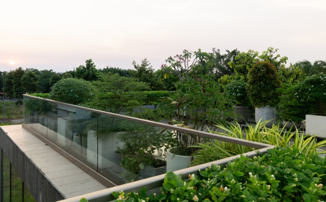 Tầng thượng tập trung dành cho các loại cây, hoa như mảng xanh điều hòa nhiệt độ.