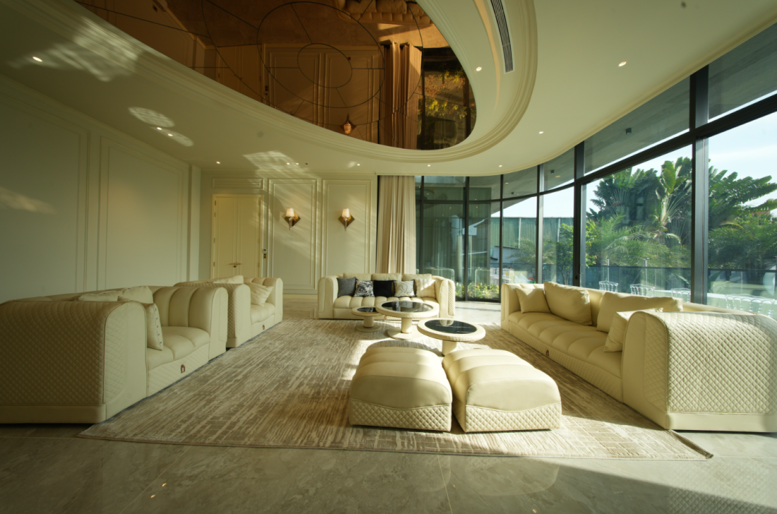 Bước qua cửa chính là sảnh lớn, một không gian cao rộng, chào đón với ánh sáng tự nhiên tràn ngập từ những ô kính lớn. Đây là nơi để tiếp khách hay thư giãn, với sàn đá sáng bóng và nội thất tối giản, tạo cảm giác sang trọng ngay từ phút đầu. Sảnh kết nối mượt mà với các khu vực khác, như một cầu nối dẫn lối hành trình khám phá.