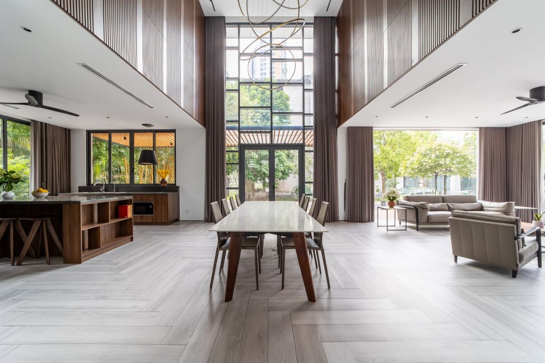 Nằm trên mảnh đất 375m² tại khu biệt thự ven sông, biệt thự là hiện thực hóa kiến tạo một tổ ấm với chất lượng sống với 60% diện tích được dành cho thiên nhiên, nơi những khối hình học hiện đại được phủ lên lớp áo Á Đông nhiệt đới tinh tế được hoàn t...