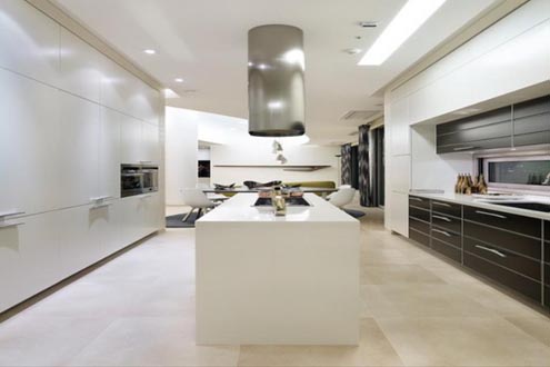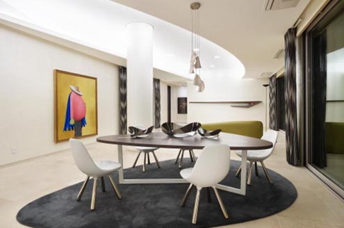 | Trần nhà mang lại cảm giác khoáng đạt và sang trọng. Để đem lại cảm giác thoáng đãng nhất cho căn nhà, chủ nhân để nguyên tường nhà màu trắng như nguyên bản cùng nội thất trắng. |
